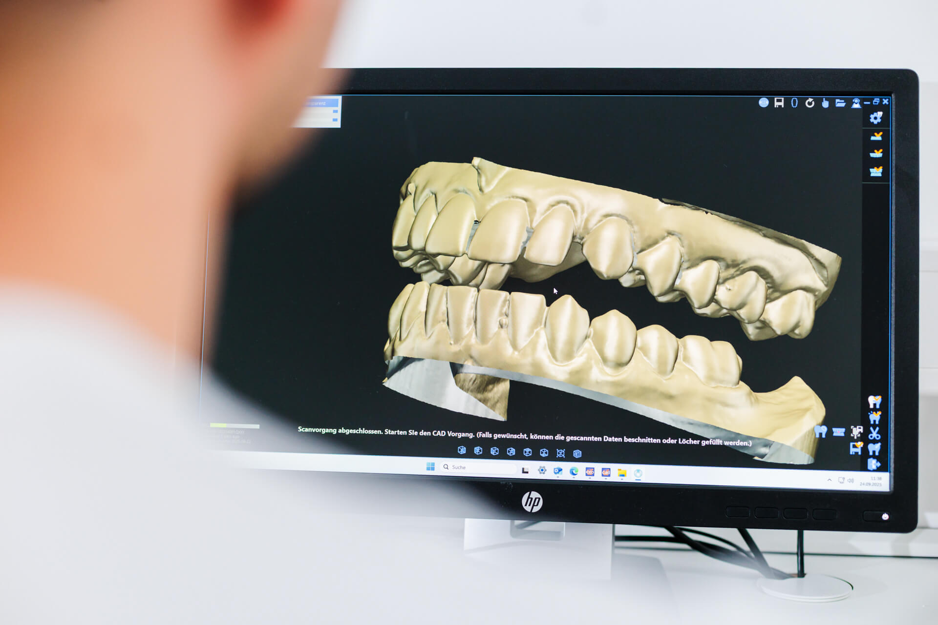 Ein weiterer Vorteil: Wir setzen konsequent auf moderne CAD/CAM-Technologie. Statt der veralteten und fehleranfälligen Gusstechnik kommen bei uns ausschließlich digital geplante Werkstücke aus industriell gefertigten Hochleistungsblöcken zum Einsatz. Diese werden computergestützt designt und anschließend mit höchster Präzision herausgefräst – für langlebigen, exakt passenden Zahnersatz auf dem neuesten Stand der Technik.
