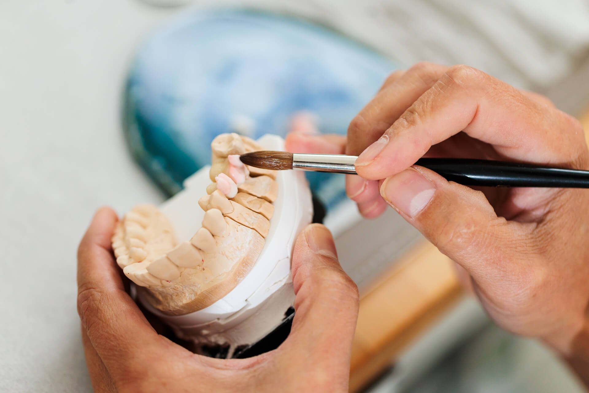 Unser praxiseigenes Dentallabor ermöglicht es uns, Ihnen ein umfassendes Leistungsspektrum aus einer Hand anzubieten. Dazu zählen hochwertiger Zahnersatz wie Kronen, Brücken, Inlays und Veneers, die individuell und passgenau für Sie gefertigt werden. Für Patienten mit Kiefergelenksbeschwerden oder nächtlichem Zähneknirschen bieten wir maßgeschneiderte Aufbissschienen an. Auch implantatgetragener Zahnersatz gehört zu unserem Spezialgebiet – präzise abgestimmt auf Ihre individuellen Bedürfnisse.
